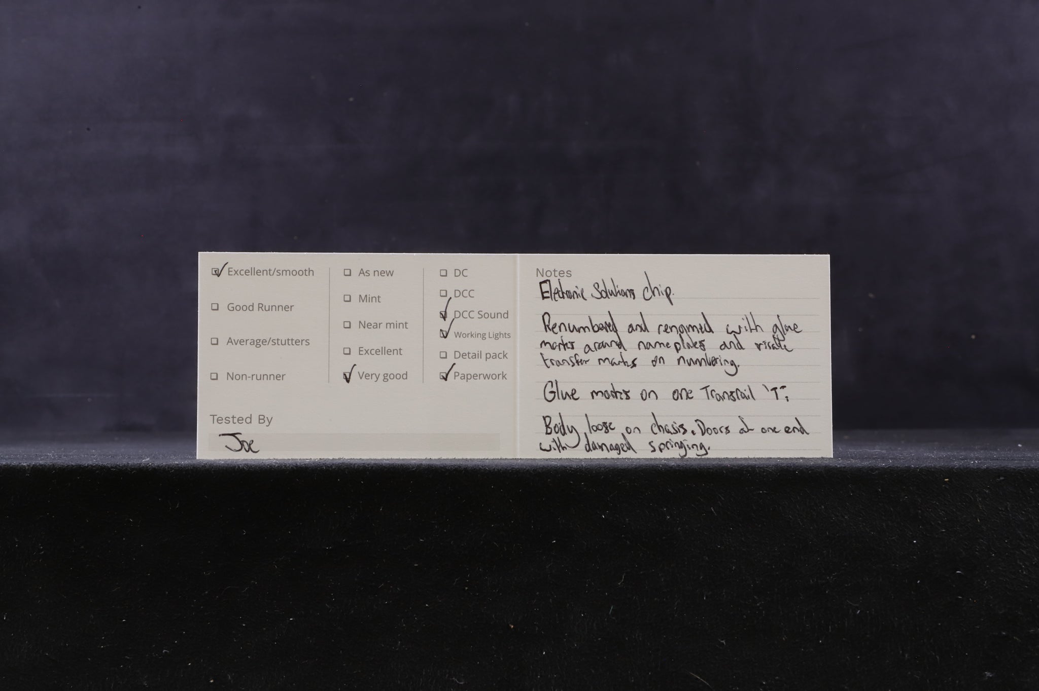 Very Good - Renumbered & renamed with glue marks around nameplates & visible transfer marks on numbering. Glue marks on one transrail 'T' Body loose on the chassis, doors at one end have damaged springs.