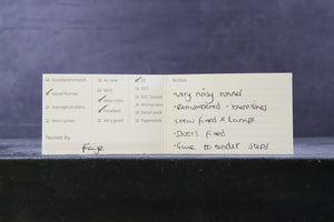Near mint/Excellent - the model has been re-numbered and had crew, lamps and doors fitted. There are glue marks to the tender steps