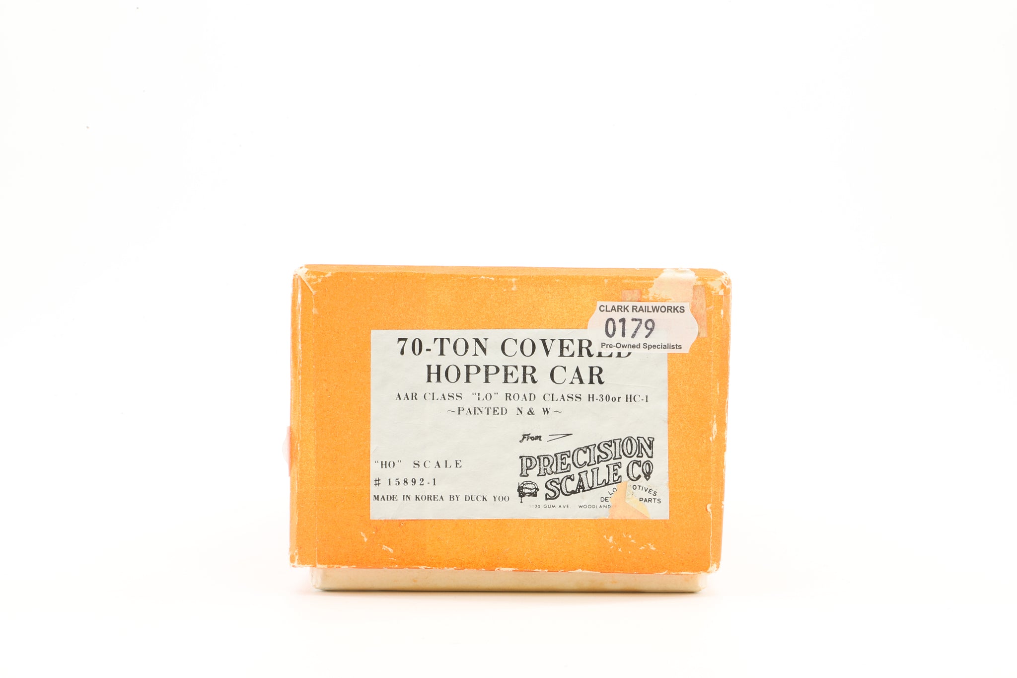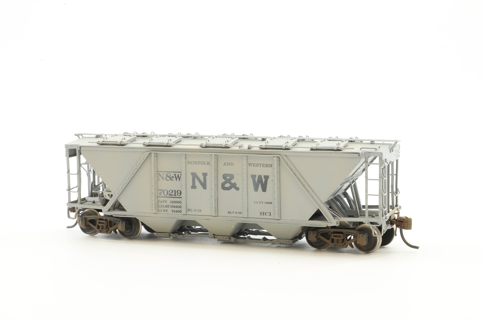 Precision Scale Co. HO Brass 15892-1 AAR Class 70T Covered Hopper Car No. 70219 in N&W Grey - Weathered