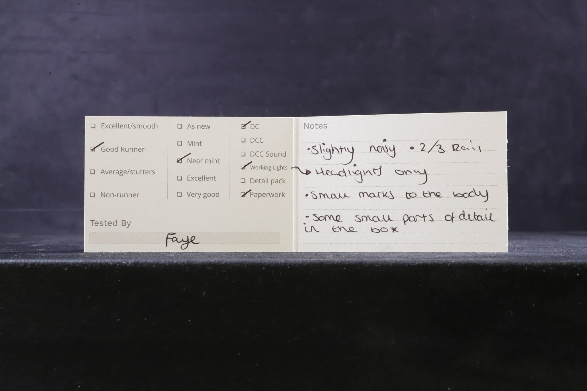 All our HO gauge models are track tested, slightly noisy runner at both low and high speeds, with working head lights only.