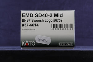 Kato HO 37-6614 EMD SD40-2 Mid BNSF Switch Logo '6752' Diesel Locomotive