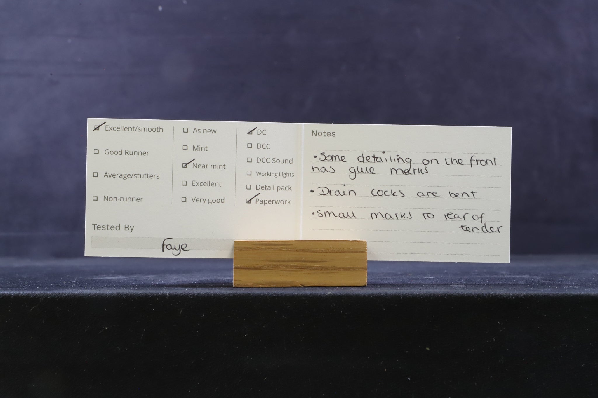 Near Mint - Some detailing on the front has glue marks, drain cocks are bent & small marks to the rear of the tender.