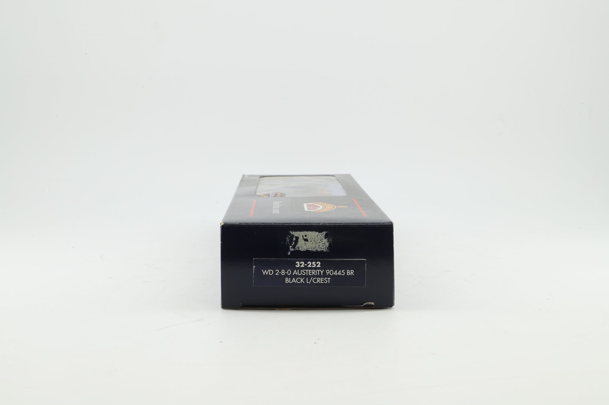 Excellent - Minor wear around end flap edges, with adhesive residue above box end label.