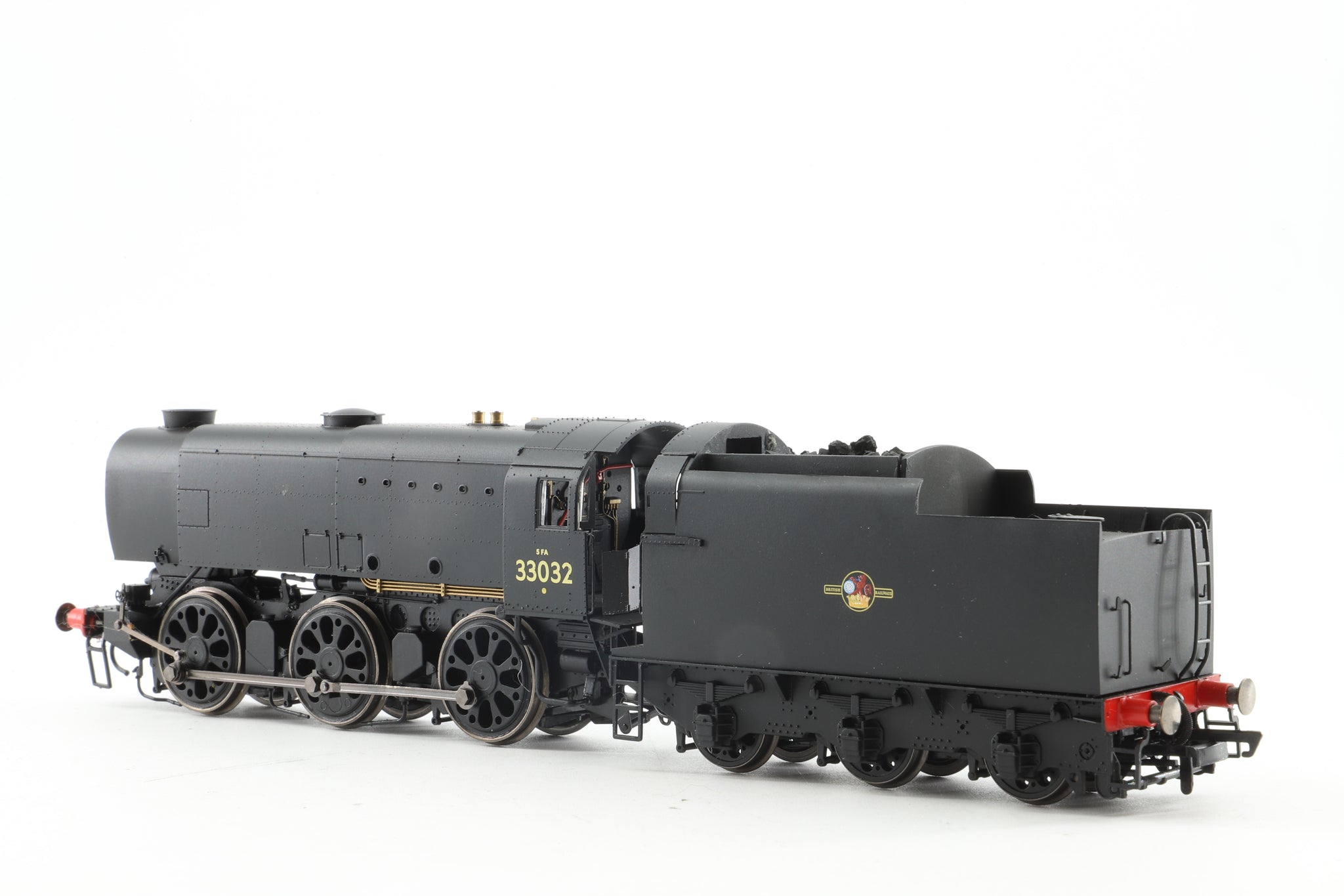 Very Good - coal fitted, damaged cab doors, large indented scratches to tender side with surrounding marks.