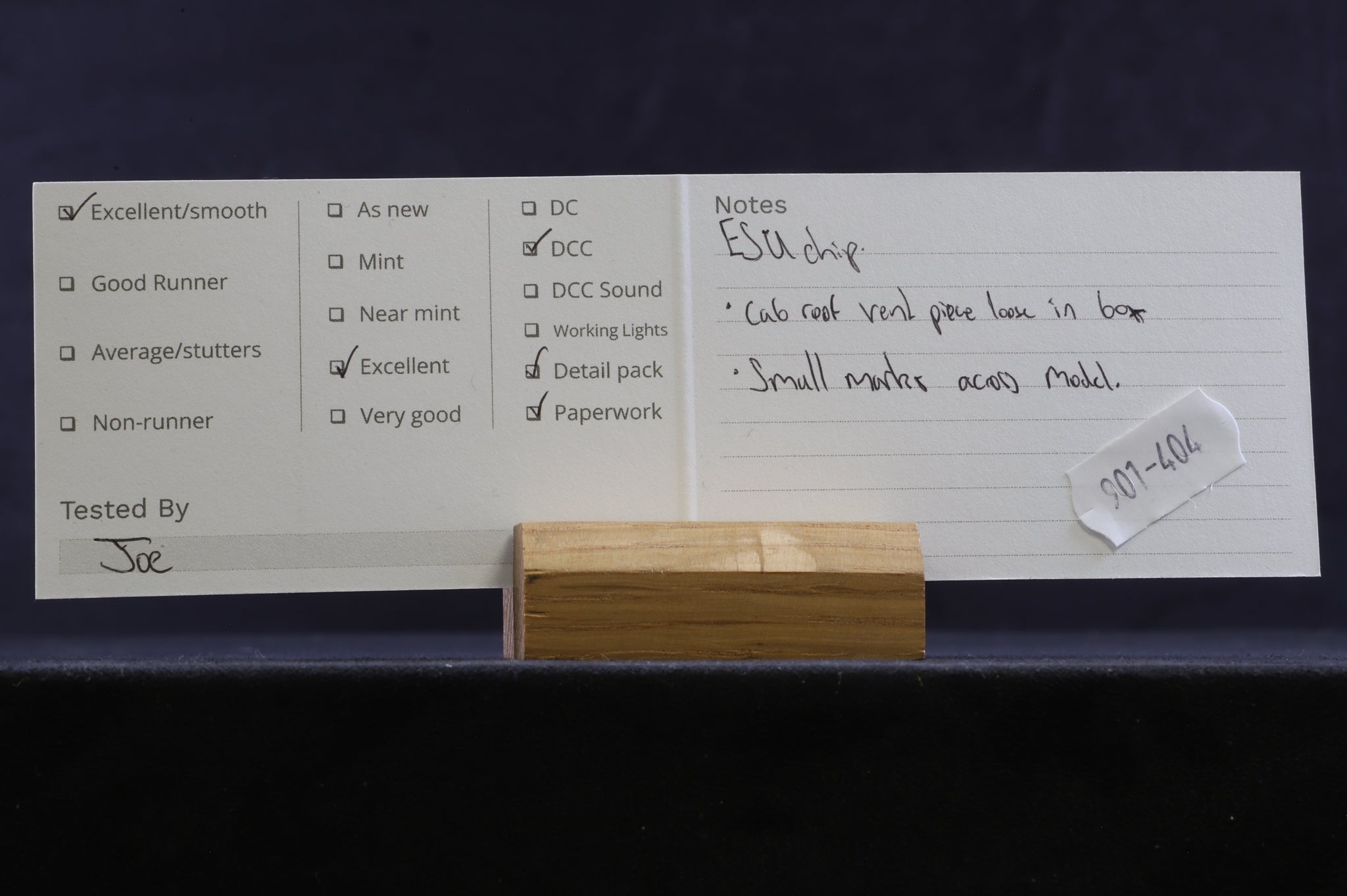 Excellent - cab roof vent piece loose in the box & small marks across the model