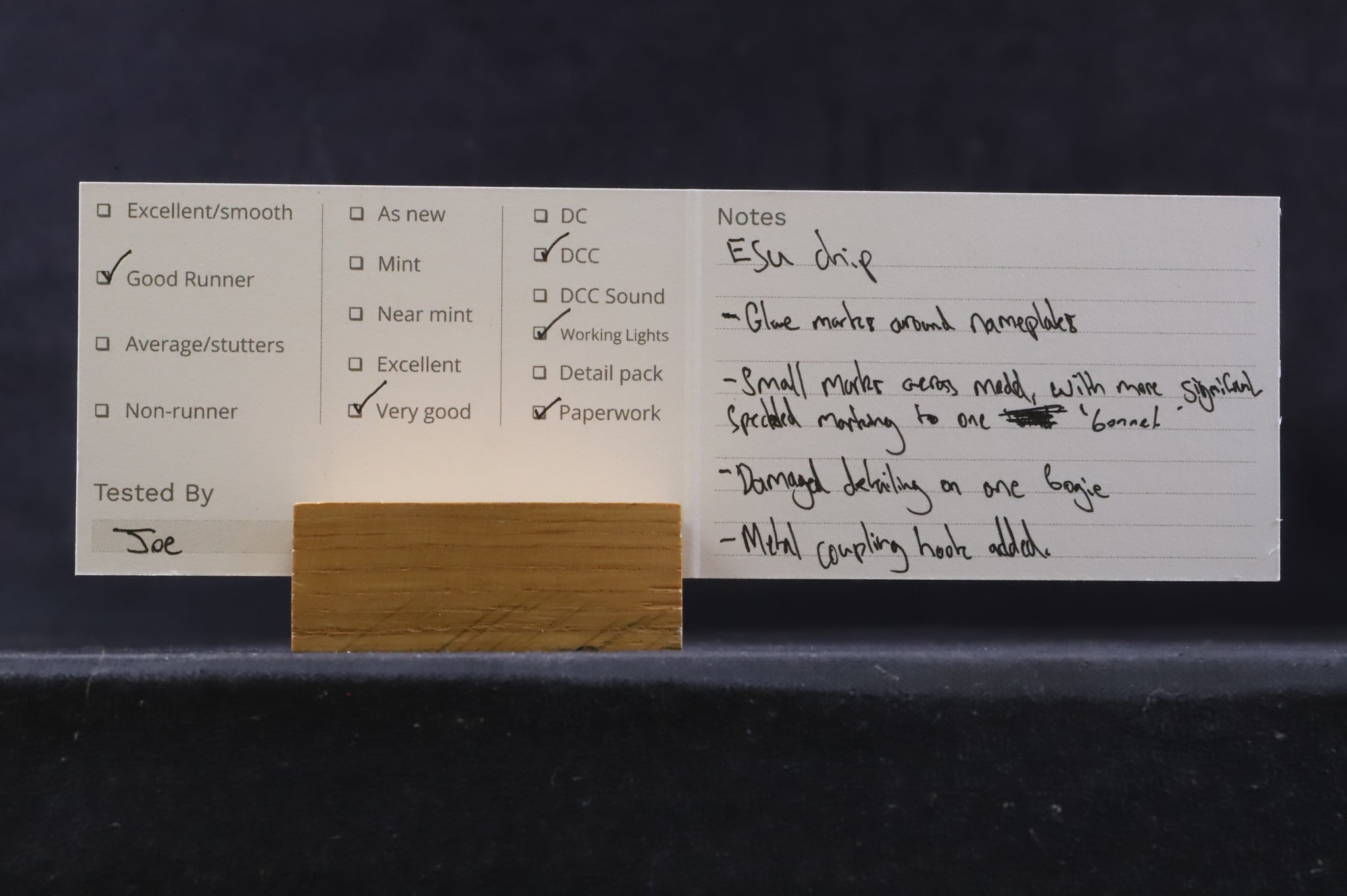 Very good-Glue marks around nameplates. Small marks across model, with more speckled marking to one 'bonnet'. Damaged detailing to one bogie. Metal coupling hook added