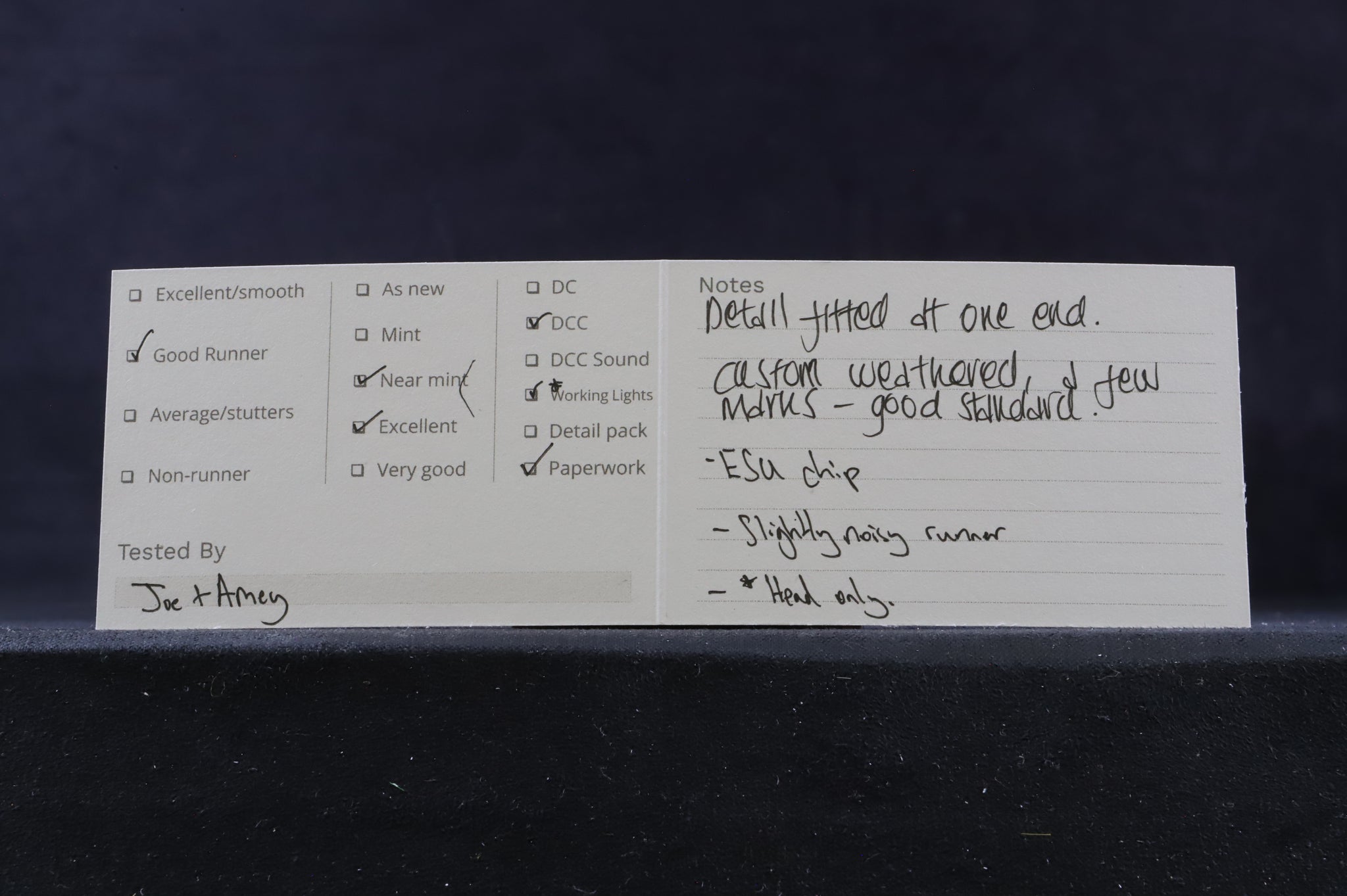 All our OO gauge models are track tested, good though slightly noisy runner at both low and high speeds. Working headlights.