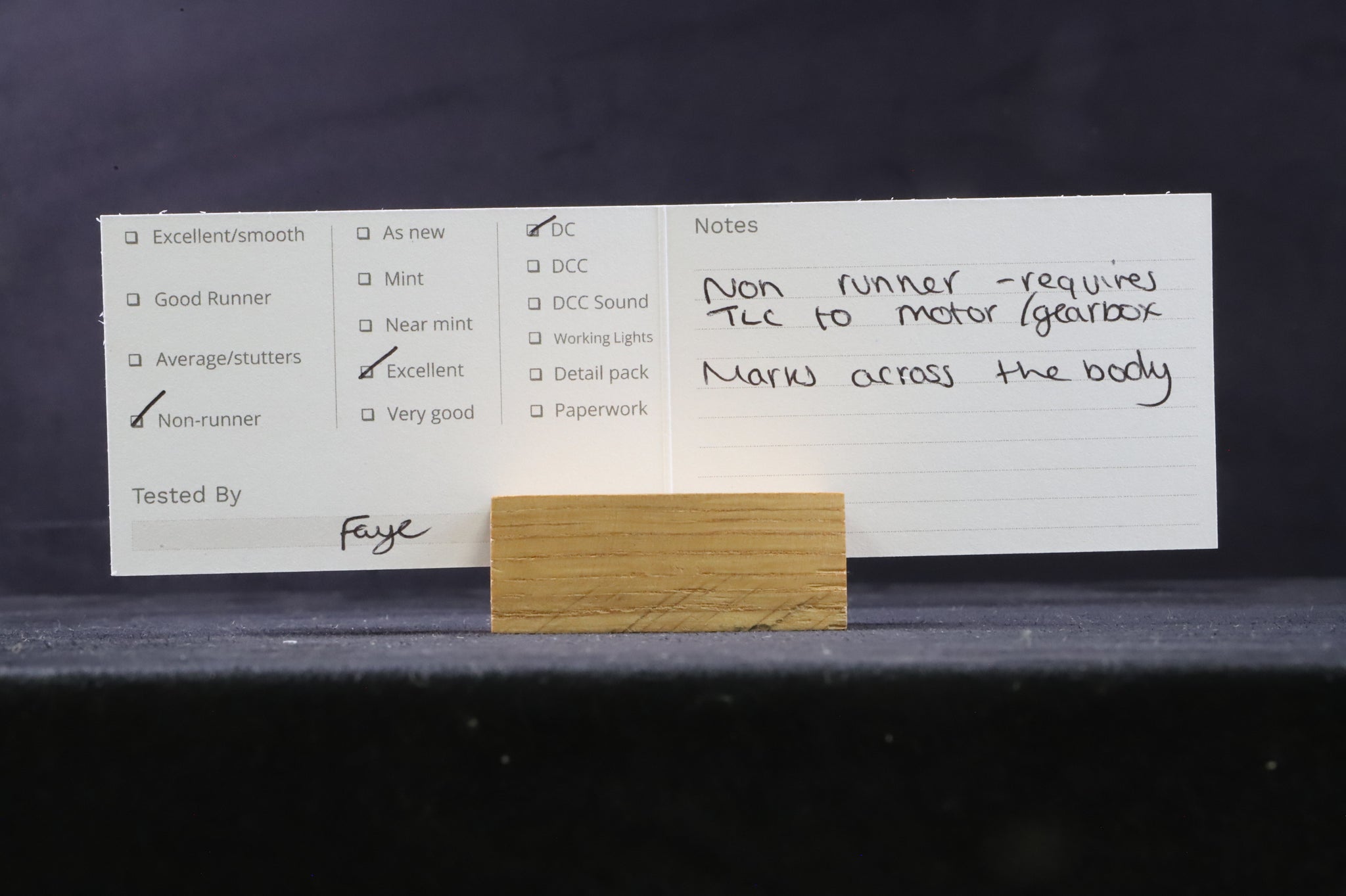All our HO gauge models are track tested. This model is a non runner and requires TLC to the motor/ gearbox.