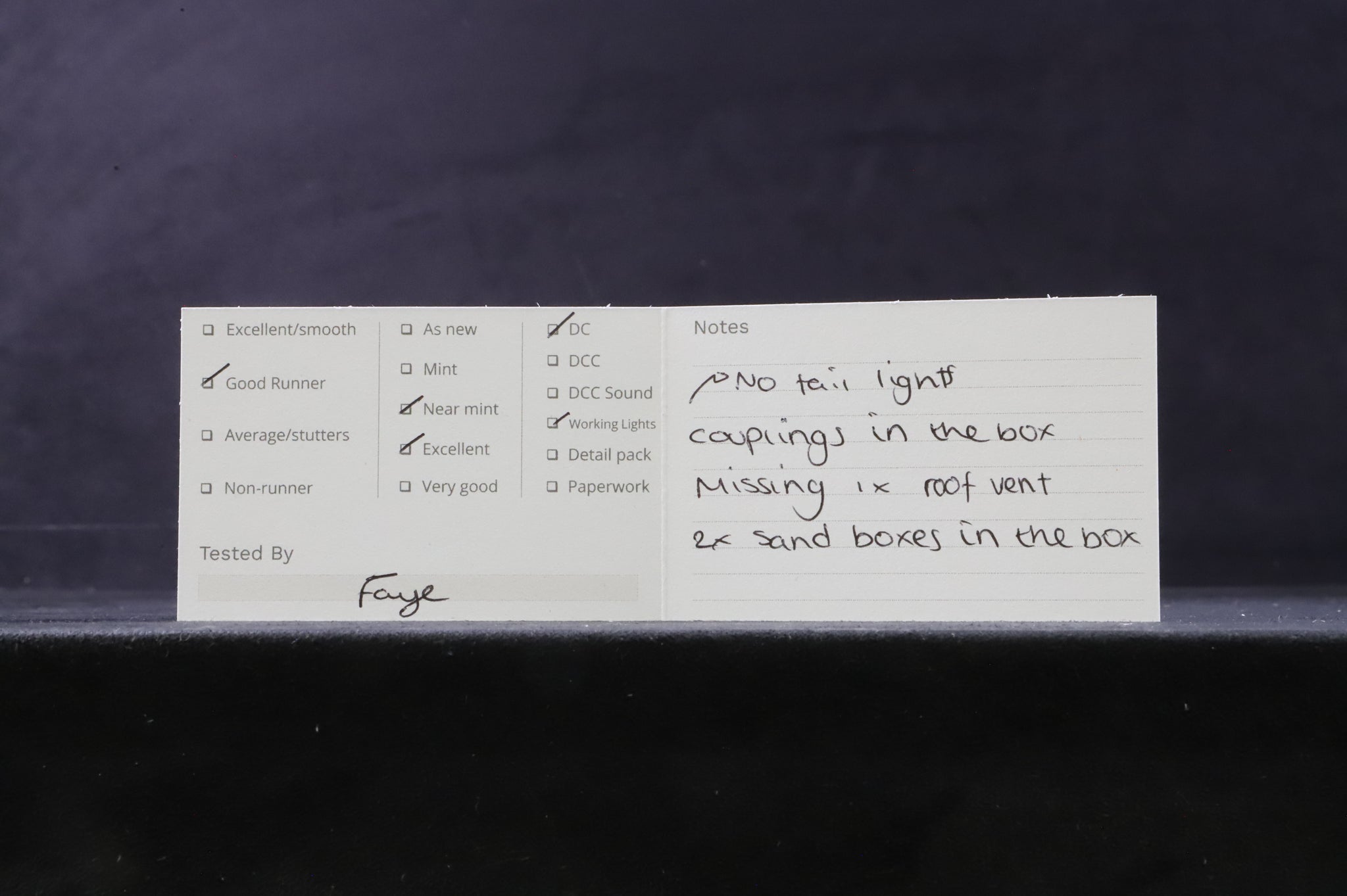 All our OO gauge models are track tested, good runner at both low and high speeds, with working lights (no tail lights).
