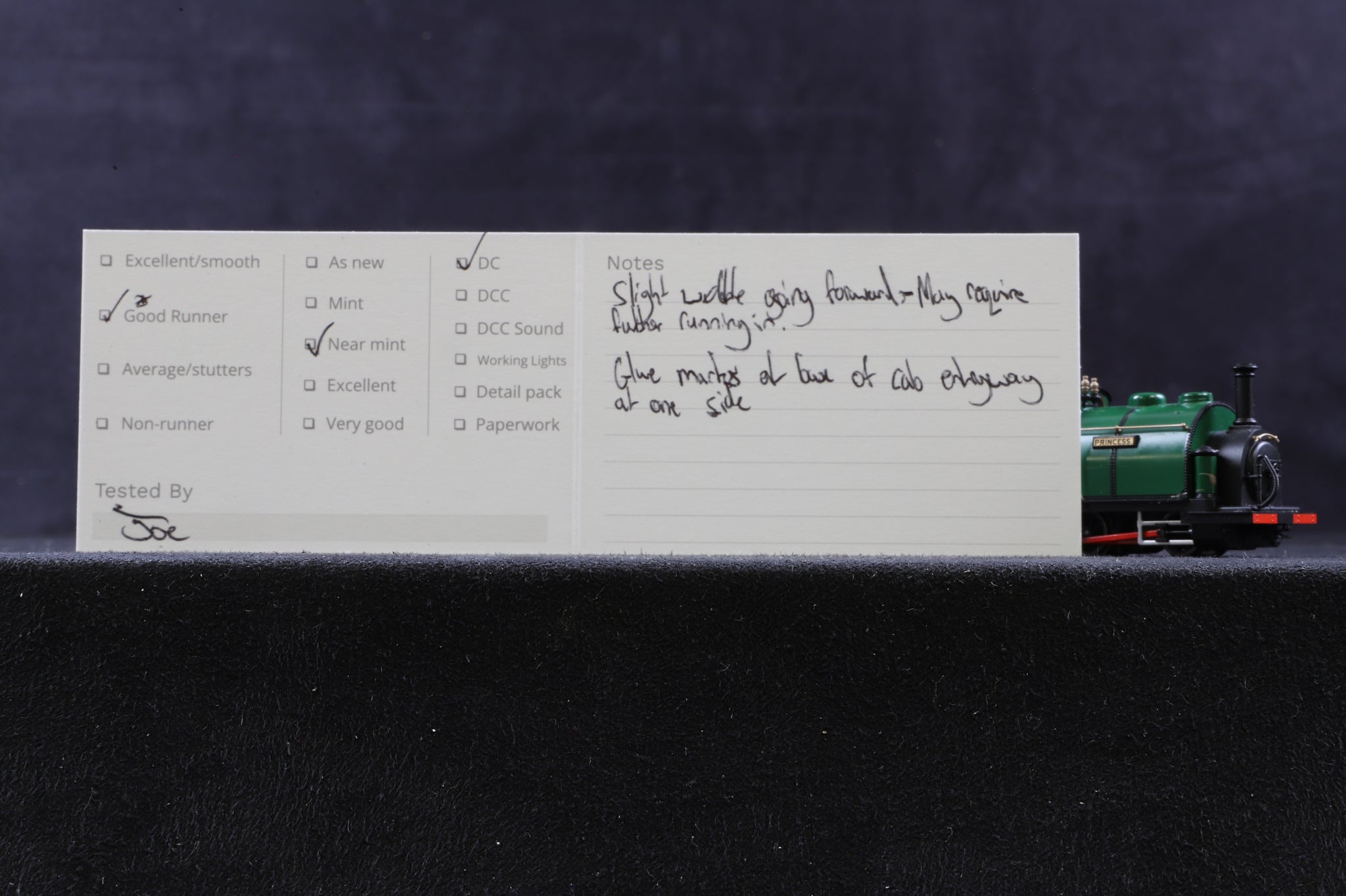 All our OO-9 gauge models are track tested, good runner at both low and high speeds, with a slight wobble traveling forward and thus may require further running in for smooth motion.
