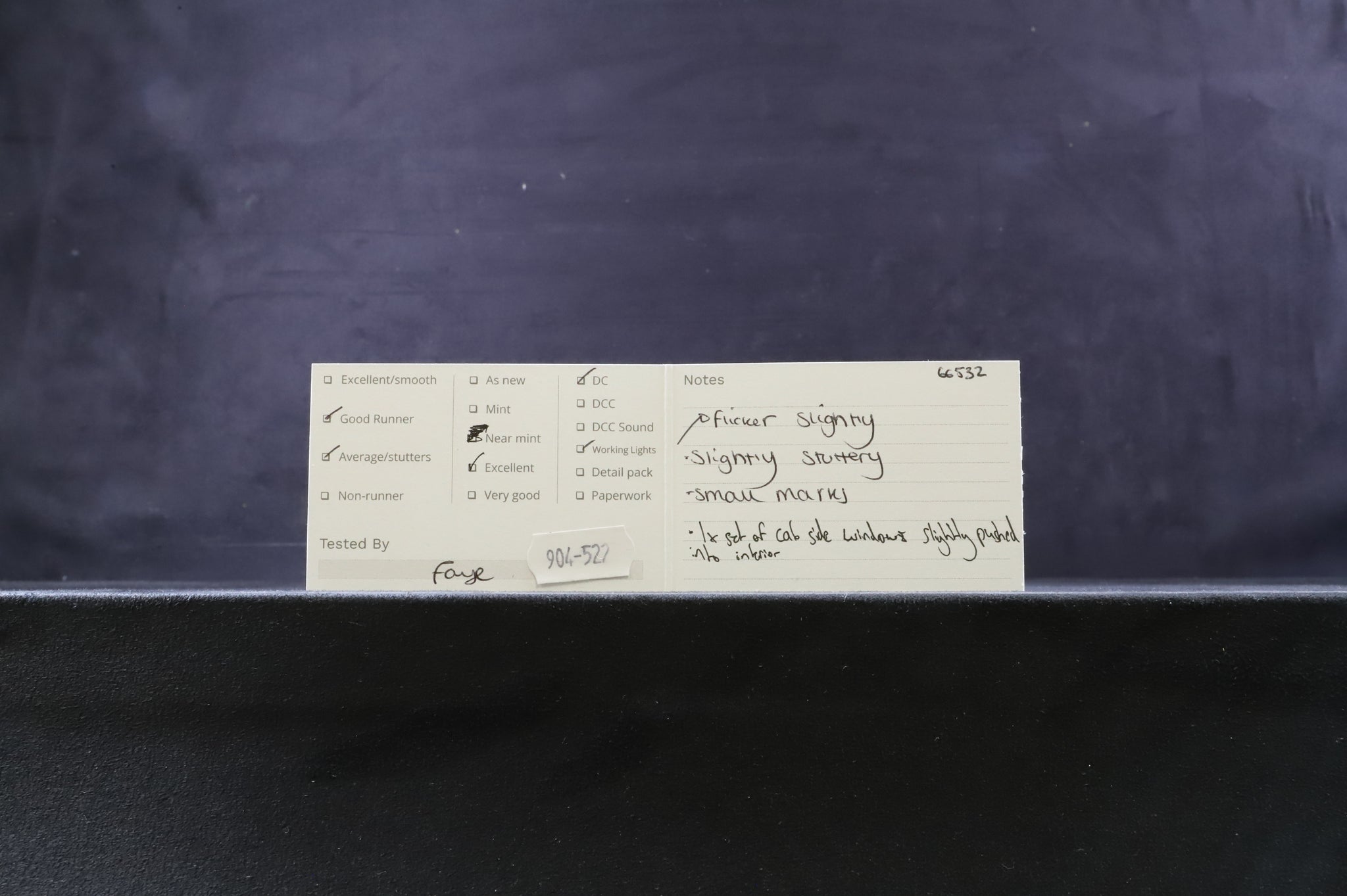 All our OO gauge models are track tested, slightly stuttering runner at both low and high speeds. Working, though flickering, lights.