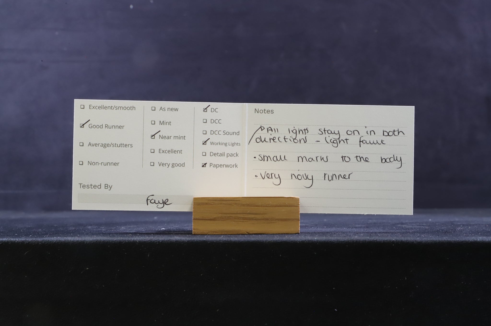 All our OO gauge models are track tested, good though very noisy runner at both low and high speeds. Lighting fault-all lights stay on in both directions of travel