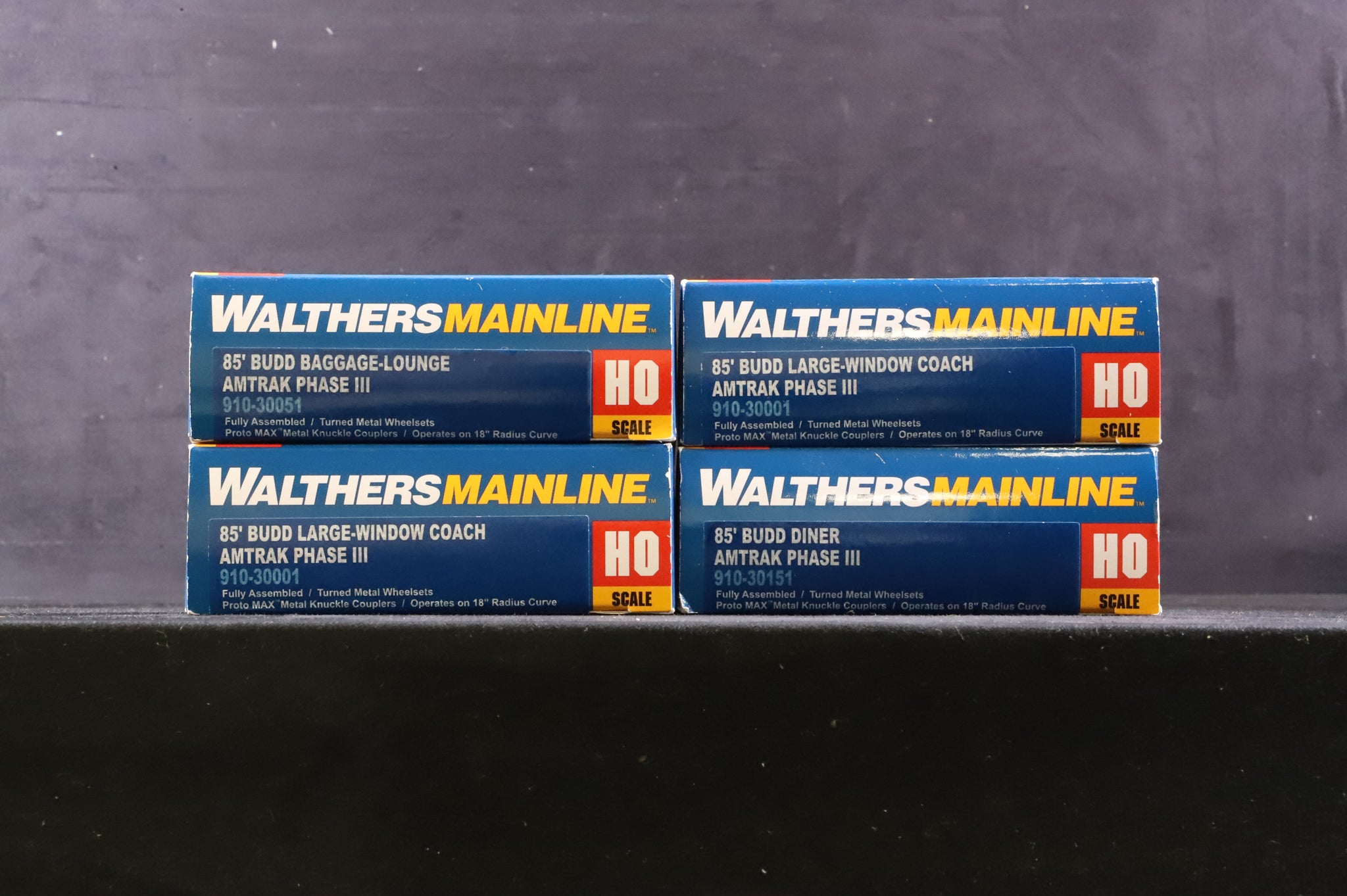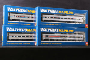 WalthersMainline HO Rake of 4 85' Budd Coaches in Amtrak Phase III Liveries