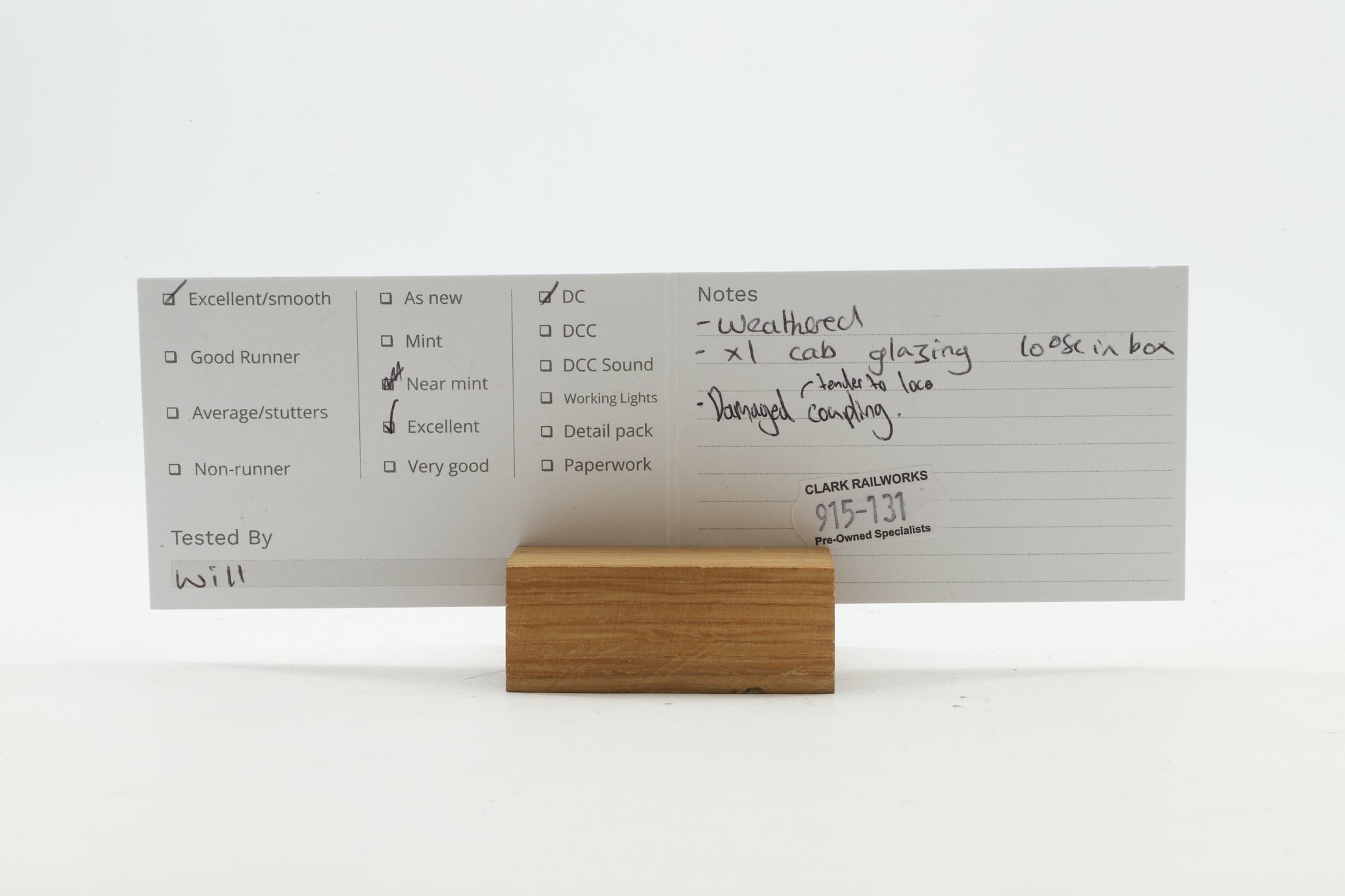 Will also include a Clark Railworks 6 month mechanical warranty. You can read more about this by hovering over the 'Information' tab and selecting "Warranty"
