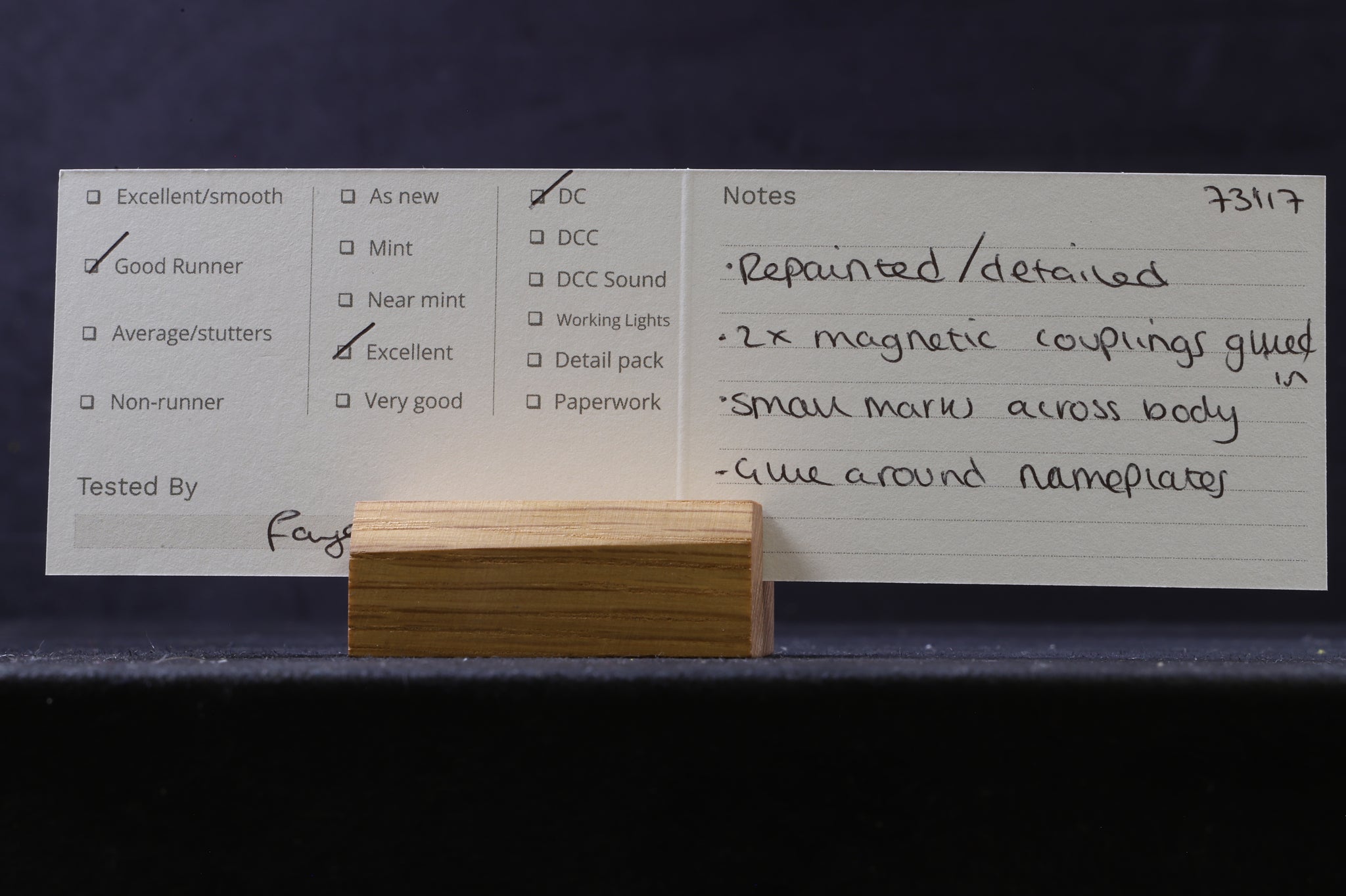 Excellent - Repainted/ detailed, 2 x magnetic couplings glued in, small marks across the body & glue around the nameplates.
