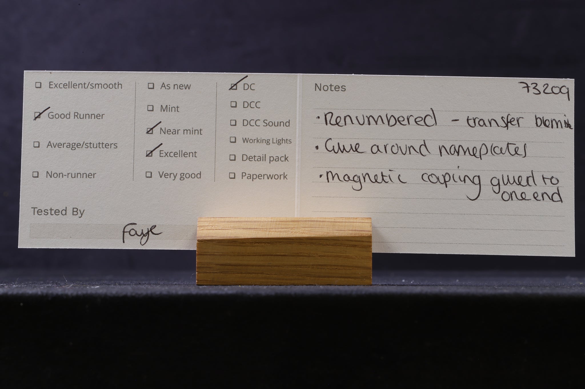 Near mint/excellent - the model has been re-numbered, named and painted, the number transfers do have a couple of very small imperfections and there is a very small amount of glue around the nameplates. A magnetic coupling has been glued in at one end.