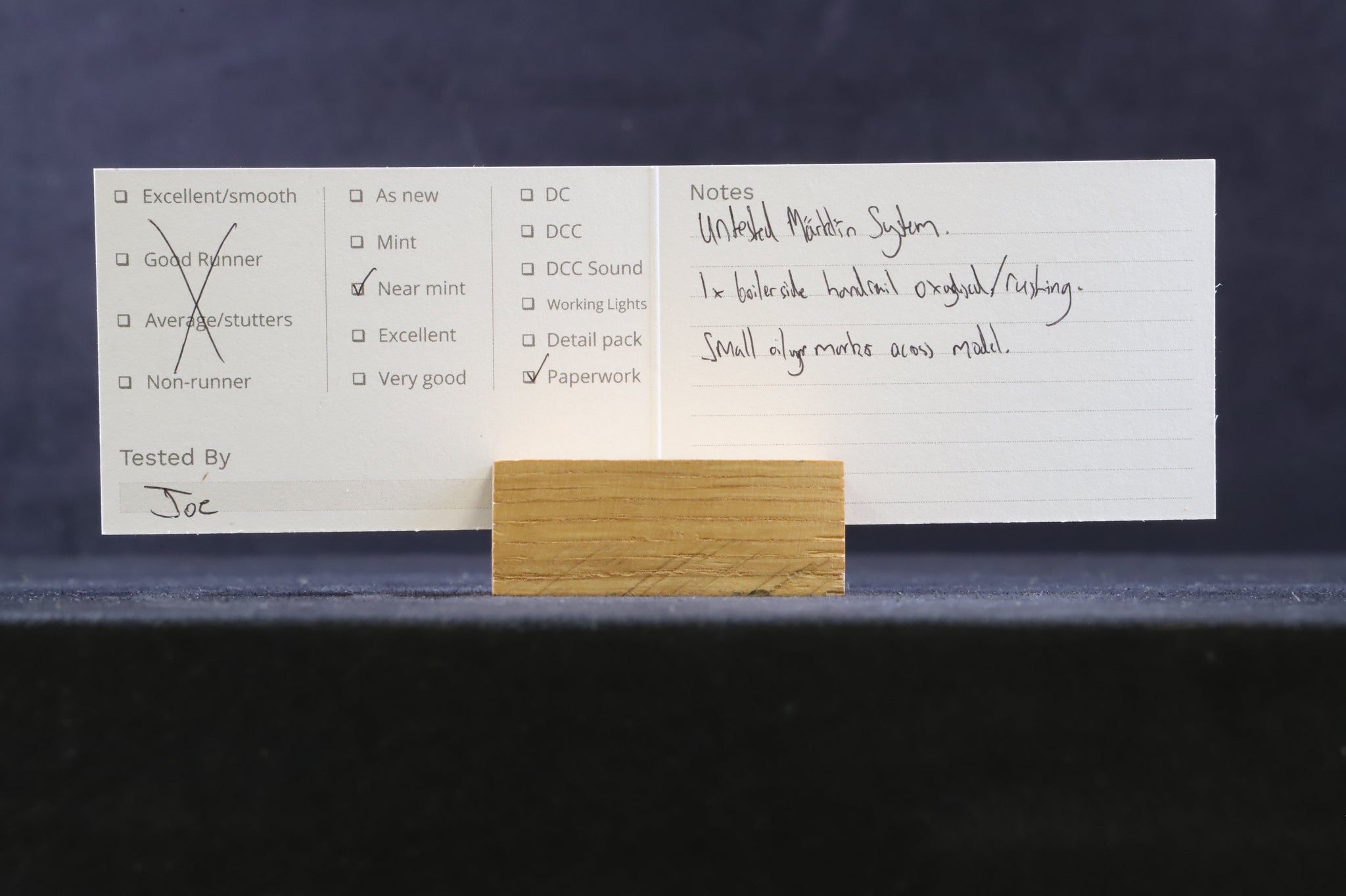 Near mint-1x boiler side handrail oxidised/rusting. Small oily marks across model